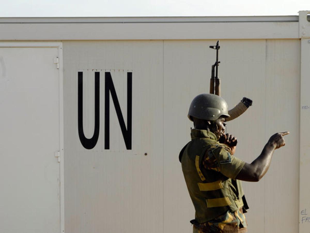 An African Union (AU) peacekeeper stands guard at the United