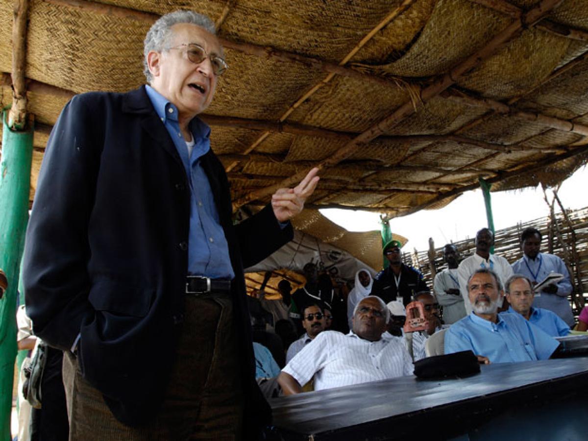 Lakhdar Brahimi delivers opening remarks to Darfuris in the
