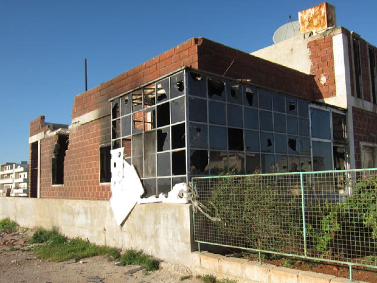 Burnt clinic (and home of a medical technician) in Taftanaz,