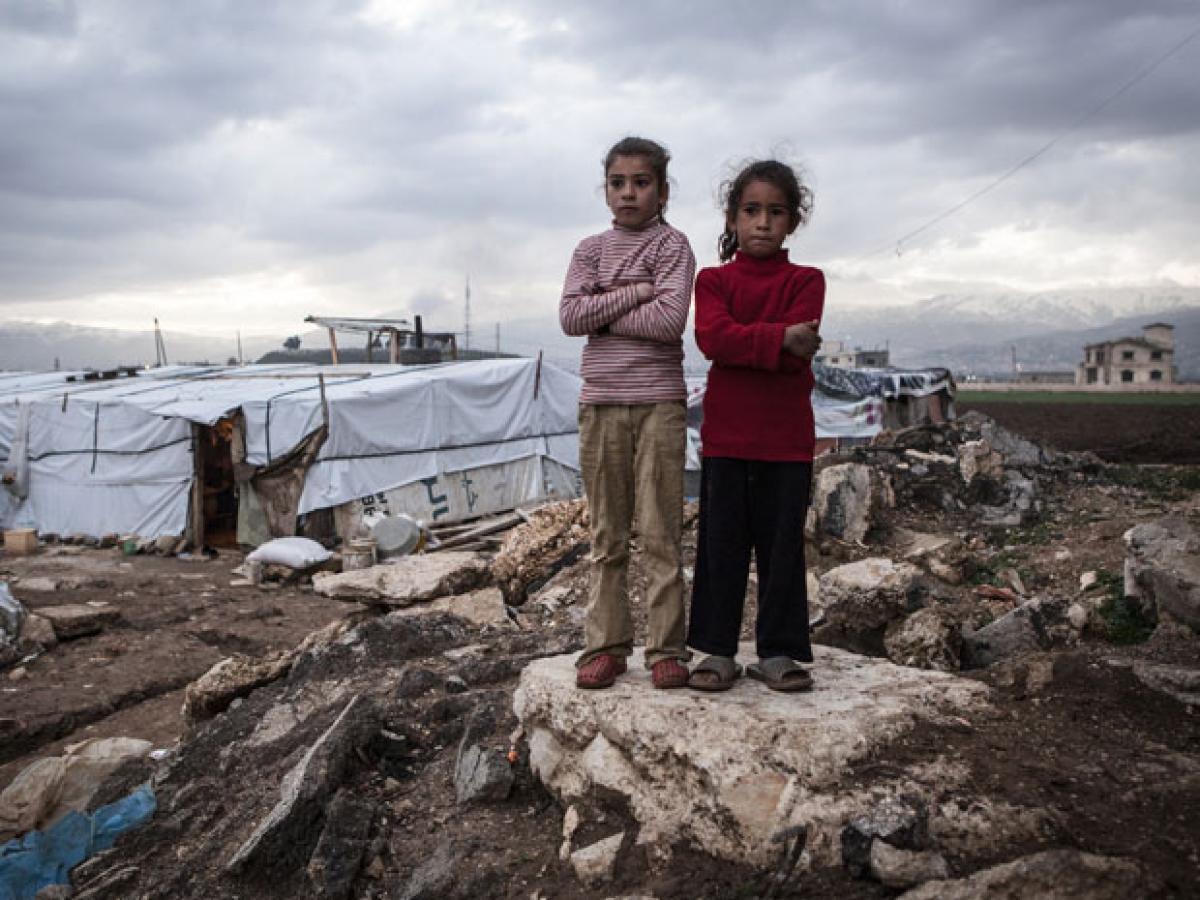 Photo: Syrian girls at a refugee settlement near the Syrian border. Credit: Jonathan Hyams/Save the Children.