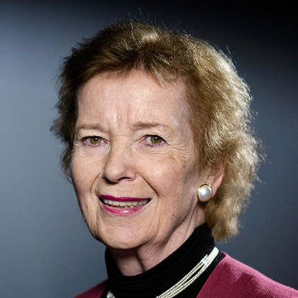 First woman President of Ireland and former UN High Commissioner for Human Rights; former Chair of The Elders; a passionate advocate for gender equality, women’s participation in peace-building, human dignity and climate justice.
